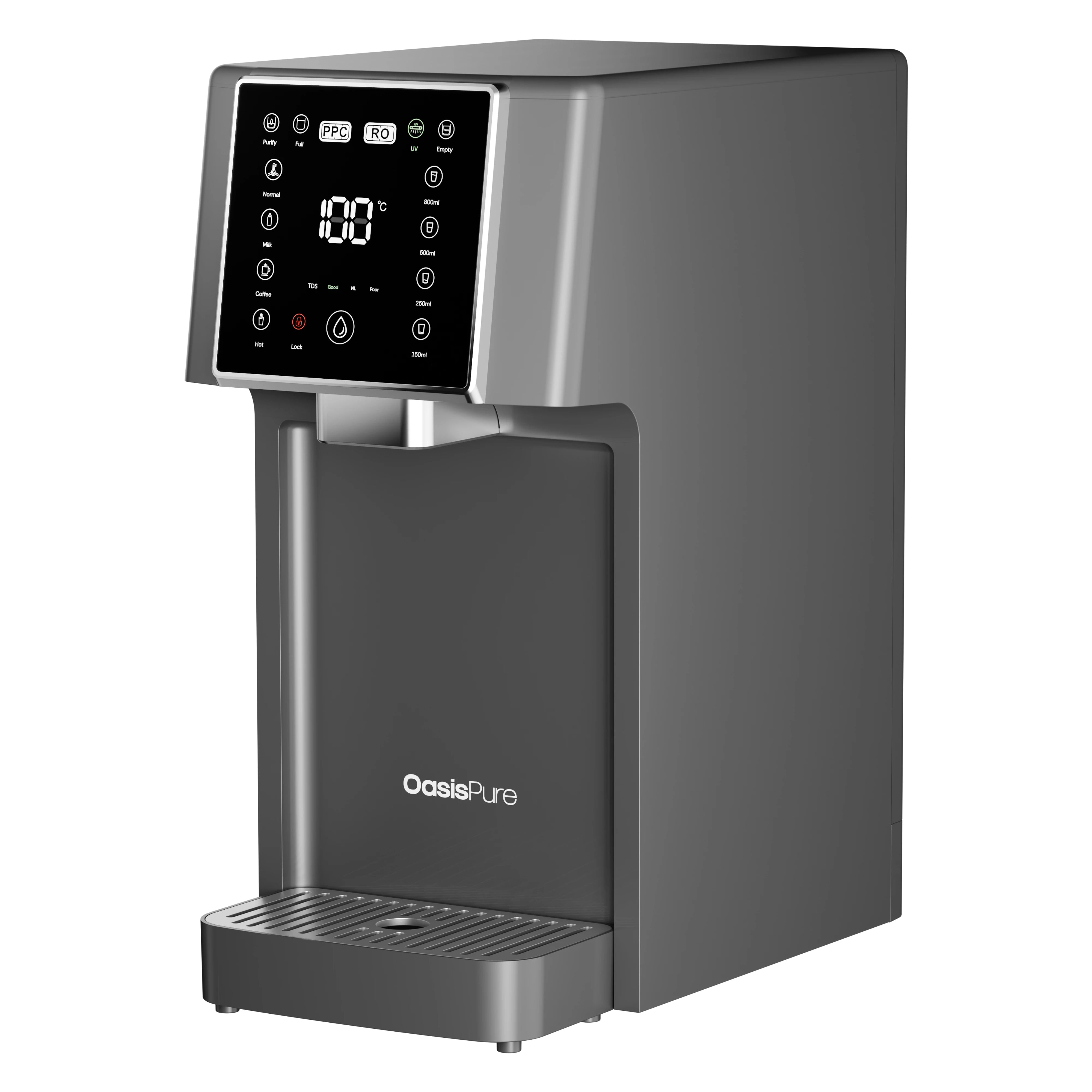 Wbudowany sterylizator UV-C w zbiorniku na czystą wodę zapewnia dodatkowy poziom bezpieczeństwa, zapewniając, że woda pozostaje czysta i wolna od szkodliwych mikroorganizmów. Sterylizator UV działa automatycznie, eliminując do 99,9% bakterii i wirusów.